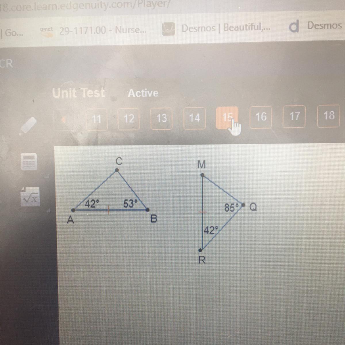 Therefore, the triangle ABC is congruent to triangle RMQ.