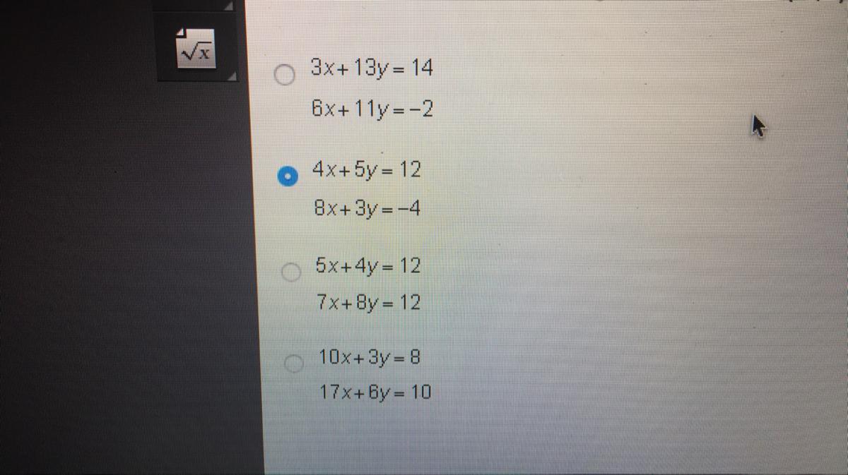 To determine which of the options has (-4,2) as its solution; we have to test each linear combination until we arrive at an answer;