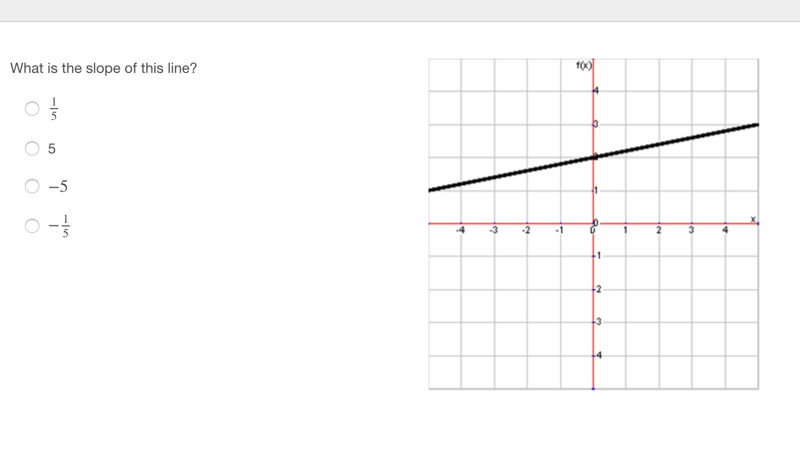 If we use this system, we count up 1 unit for our rise and count 5 units for our run, rise over run the slope would be 1/5.