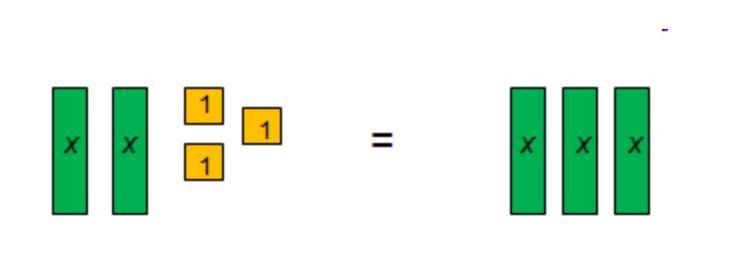 In the question given, the left hand side shows two symbols "X" in green color and three symbols "1" in yellow color. Comparing these with the right hand side that has three symbols "X" in green color, we can see that the like terms are the green colored "X" symbols.