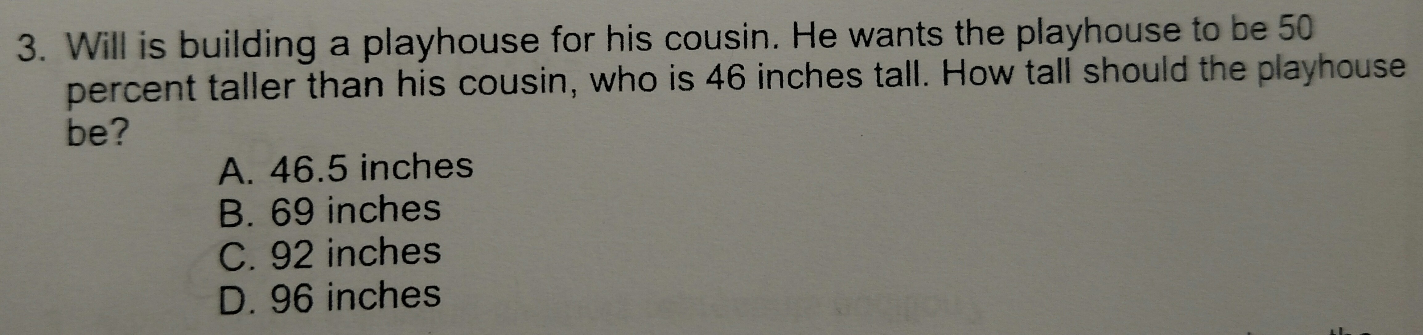 46 + 23 Will be 59 inches taller