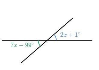 Therefore, since the measure of one angle is 7x - 99° and the measure of the other angle is 2x + 1°, we can setup the equation 7x - 99 = 2x + 1.