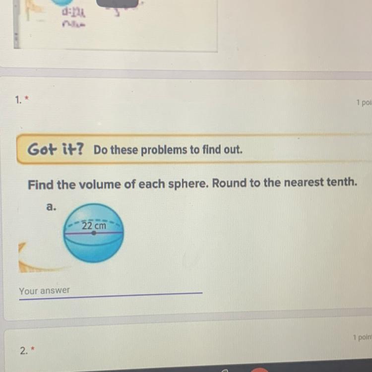 Find the volume of each sphere. Round to the nearest tenth.