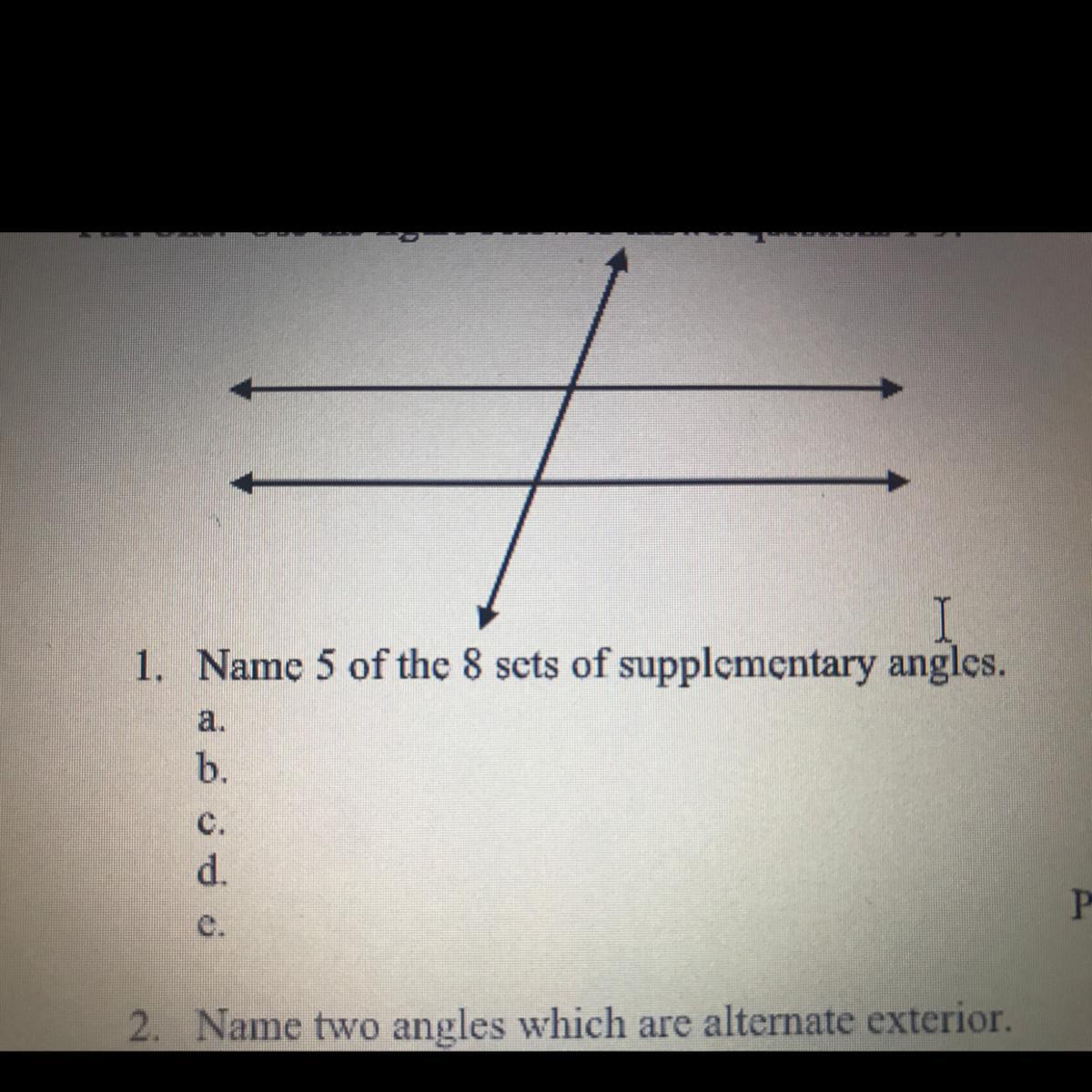Parallel lines cut by a transversal.