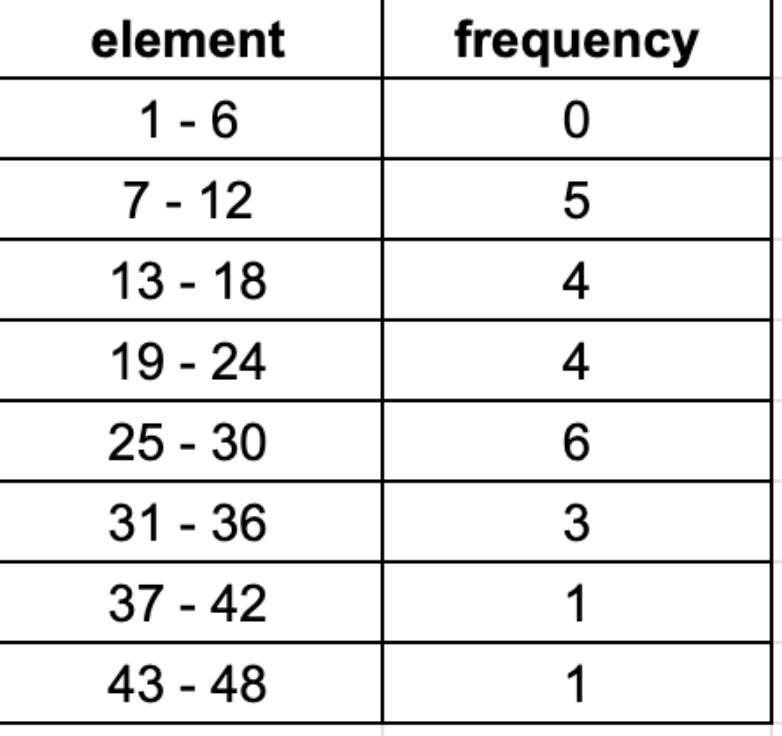 - a frequency table is how much a number occurs, for example there are 4 10's in data list given so the frequency is 4