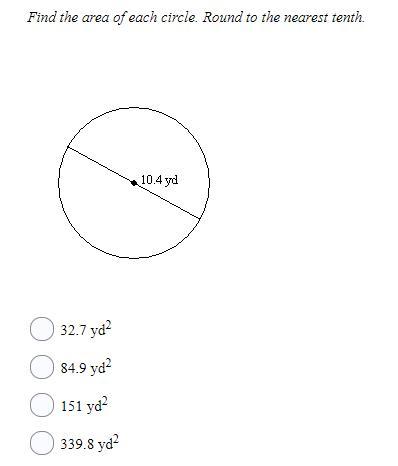 10 POINTS Find the area of each circle. Round to the nearest tenth.