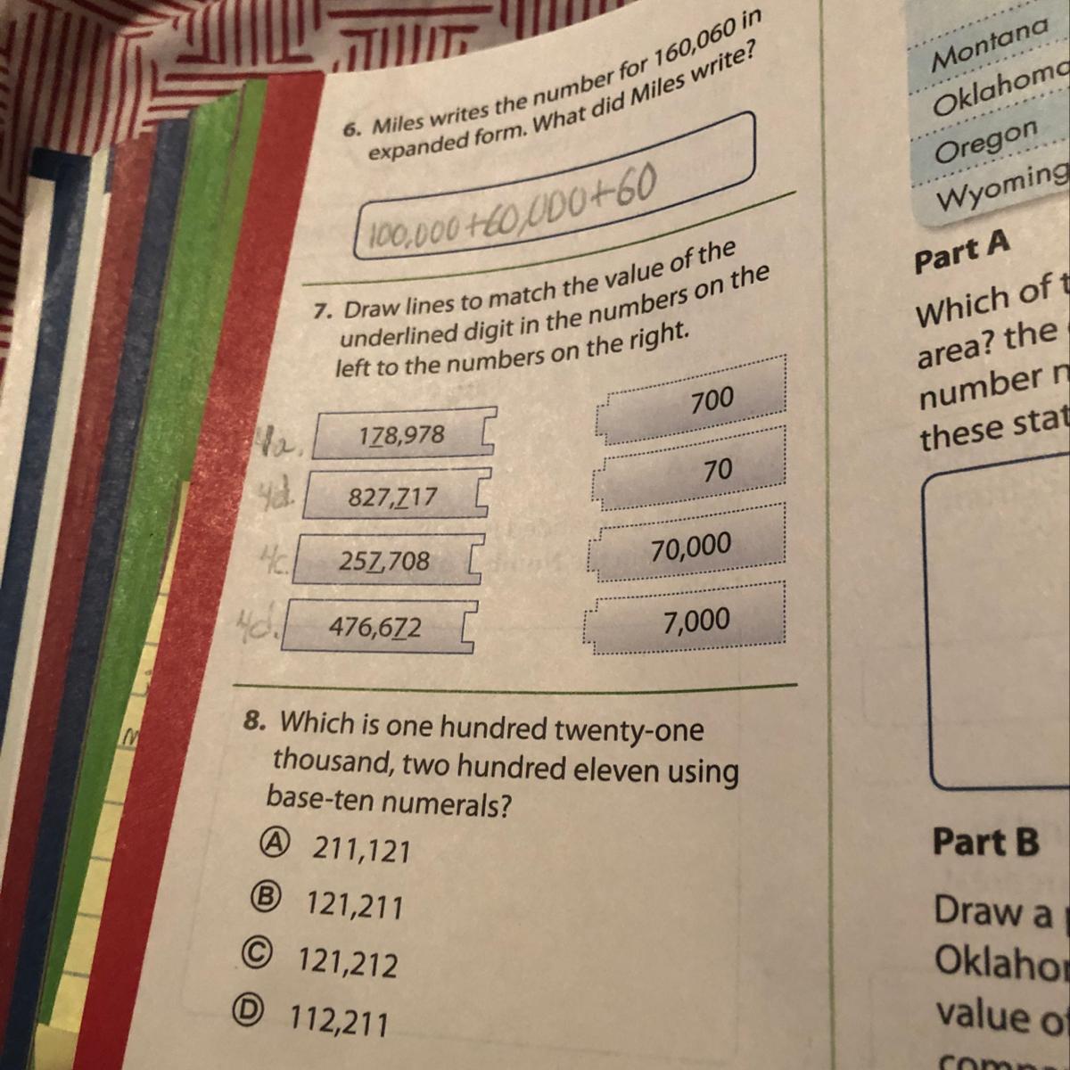 7) 178,978- the underlined number is 7 which the ten-thousand place. The underlined 7 is 70,000.