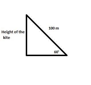 The angle of elevation to see a kite from a stone lying to the ground is 60 degrees. If a thread is tied with a kite and a stone, then that thread is 100 meters long, find the height of the kite.