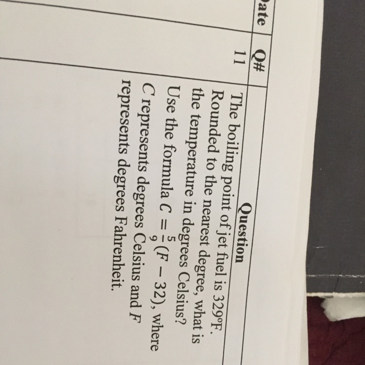 We know that the burning point is 329F and need to find Celsius. We can use the formula given to convert from Fahrenheit to Celsius by filling in the known value and solving for the unknown.