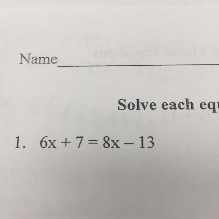 6x + 7 = 8x - 13