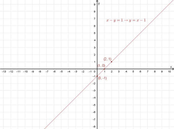 for\ x=0\to y=0-1=-1\to(0,\ -1)\\for\ x=1\to y=1-1=0\to(1,\ 0)\\for\ x=2\to y=2-1=1\to(2,\ 1)