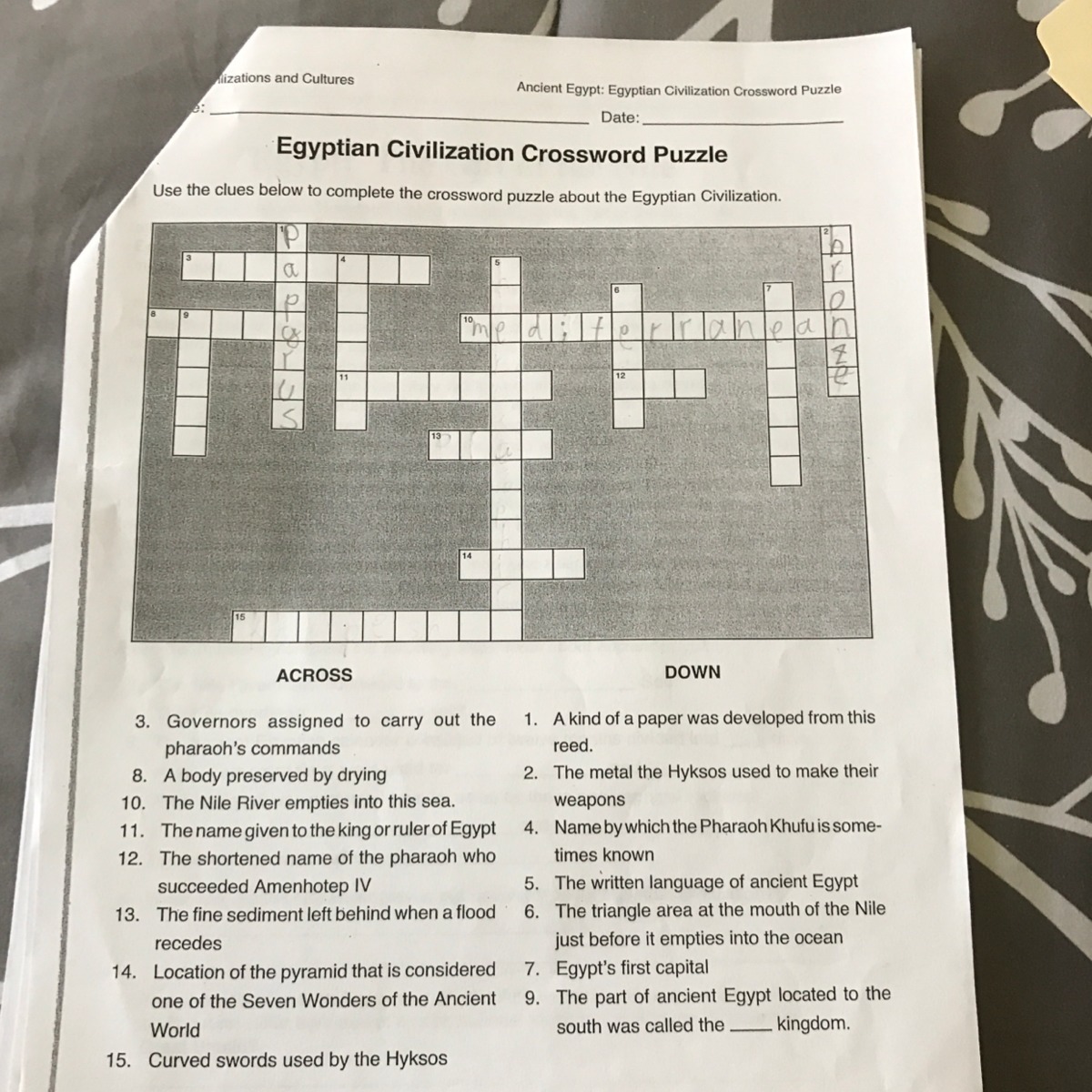 In this exercise you have to complete the crossword Puzzle with the historical information about Egyptian Civilization.