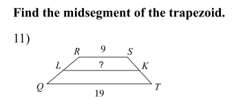 So what you do is 19/2 = 9.5 because mid segment is half number of the actual number. It kinda divides it. Learn it in geometry class last Friday lol.