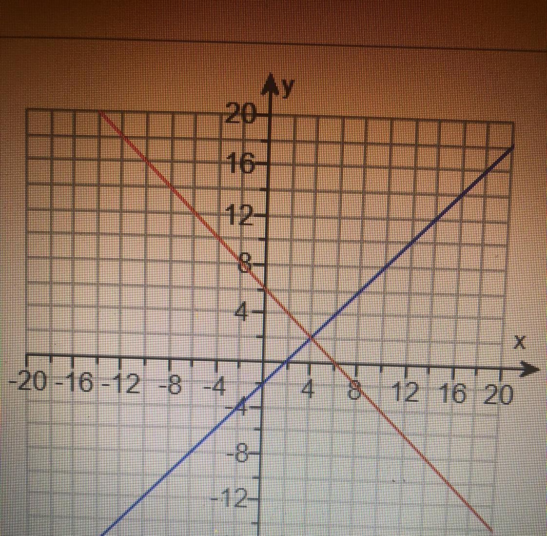 Set them into slope-intercept forms of equations then set those equations equal to each other and solve for x and y. y = 34x - 5 and y = -14x+3. Set those equal to each other, solve for x to get x = 1/6. Sub in that x value to get y = 2/3. The point where they intersect is the solution of the system; in other words, where on both lines we have the exact same (x, y) value.