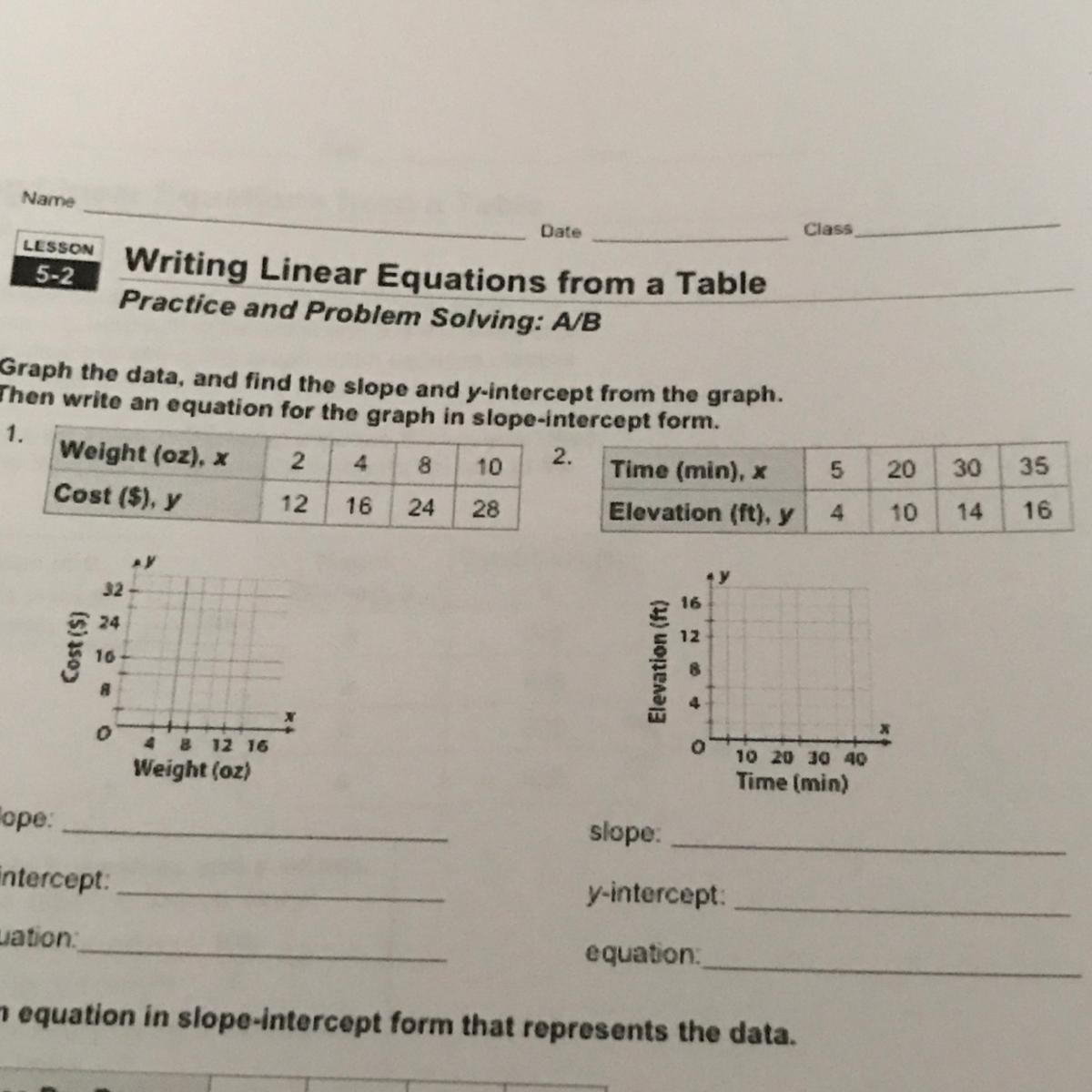 Let's look at the first problem. Let's use the first two points, (x and y pairs.)
