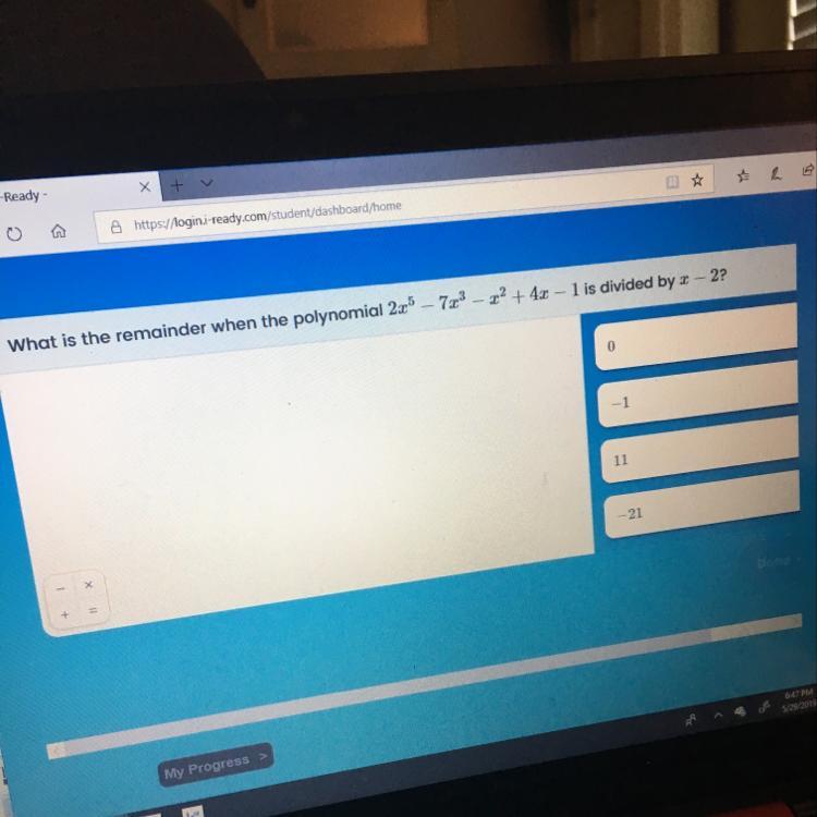 To find the remainder, we will take it as x - 2 = 0