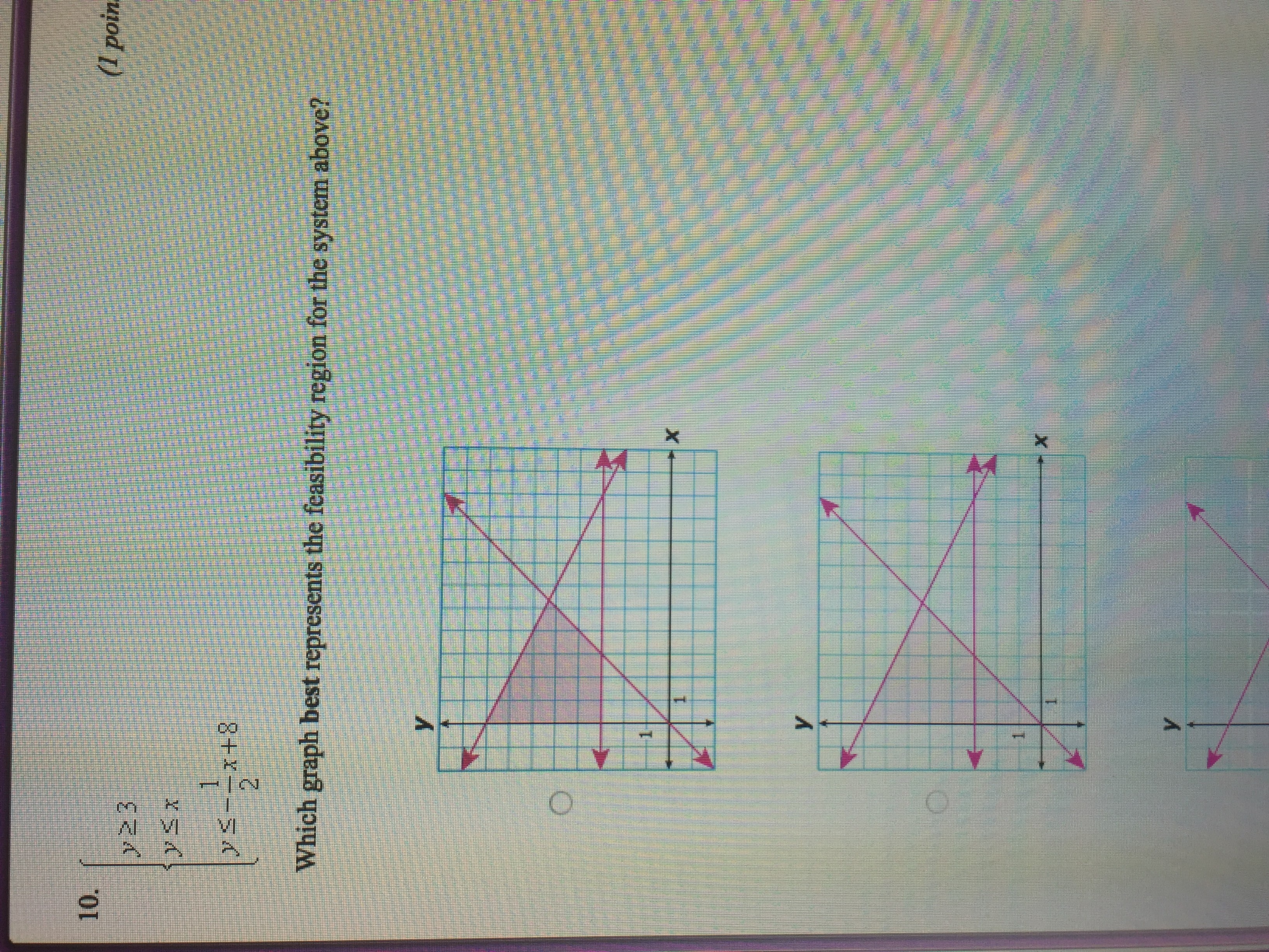 - In a system (multiple inequalities), the shaded areas which are overlapping are the solution.