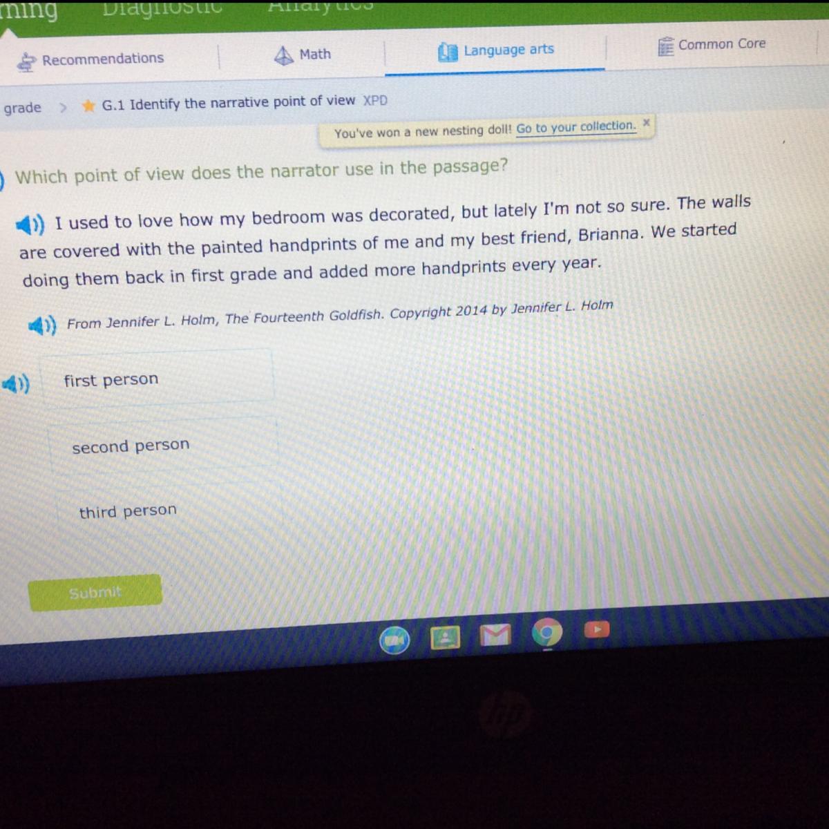 When we talk about ourselves, our opinions, and the things that happen to us, we generally speak in the first person. The biggest clue that a sentence is written in the first person is the use of first-person pronouns. In the first sentence of this paragraph, the pronouns appear in bold text.