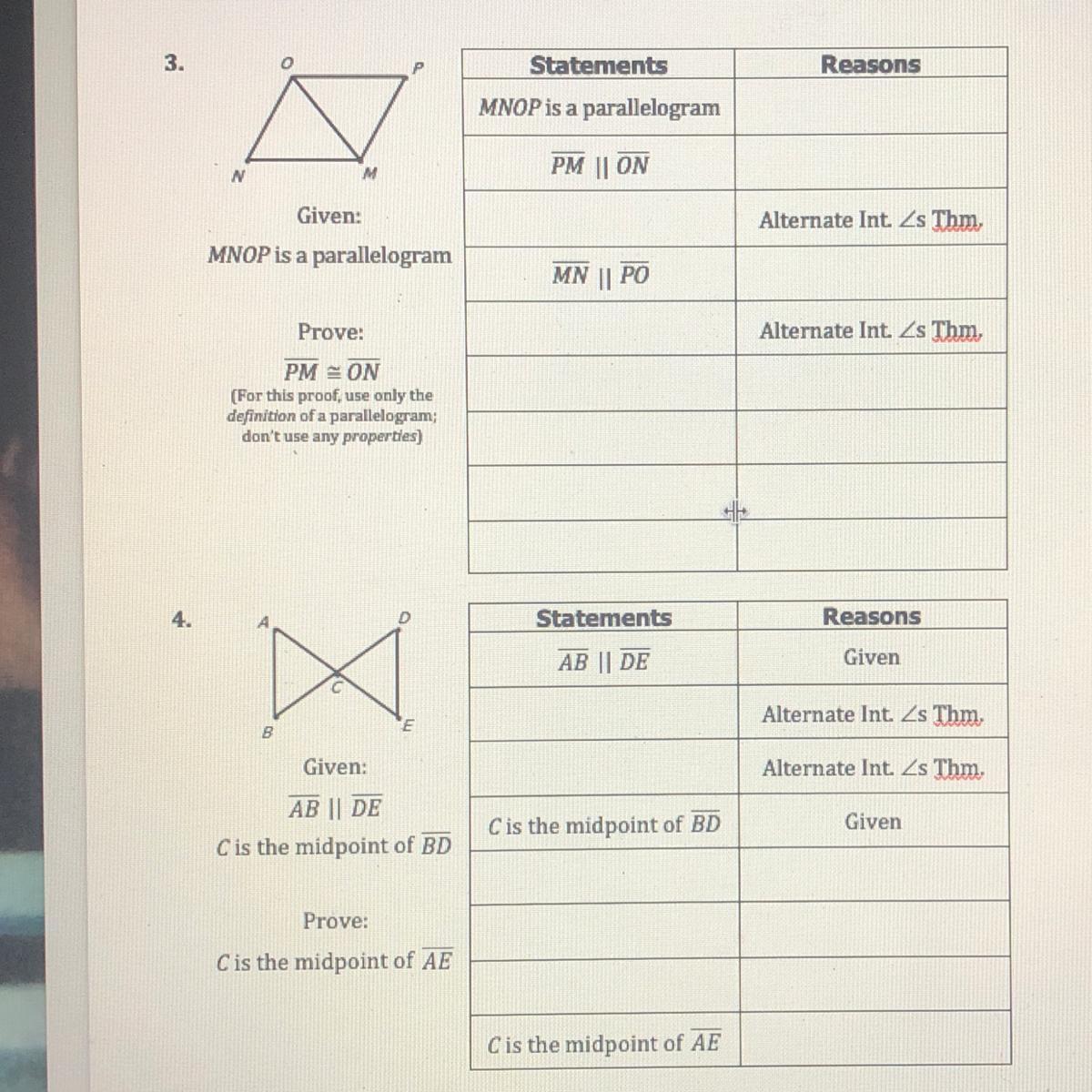 ∠NMO ≅ ∠MOP: Reason Alternate interior angles