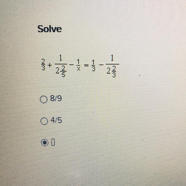 2/3 + 1 / ( 2 2/5) - 1/x = 1/3 - 1 / ( 2 2/3)