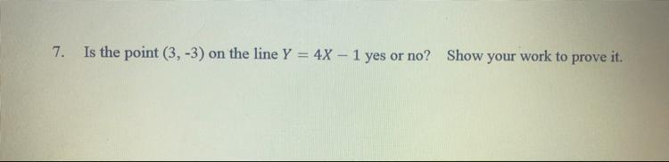 Step 1: Plug 3 into x and -3 in to y in the equation: y = 4x - 1