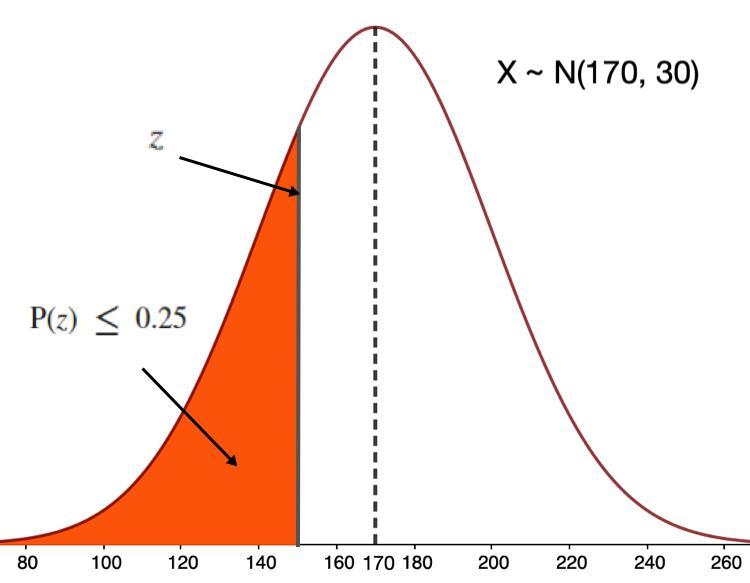 As shown in the figure below, the score that defines the first quartile of the defined normal distribution is the same as the score that, when evaluated in the cumulative density function,