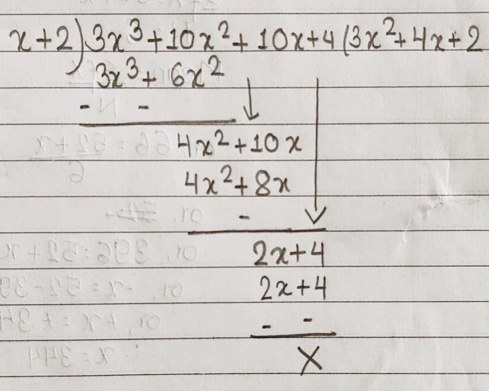What is the quotient (3x^3+10x^2+10x+4) divided by (x+2)?