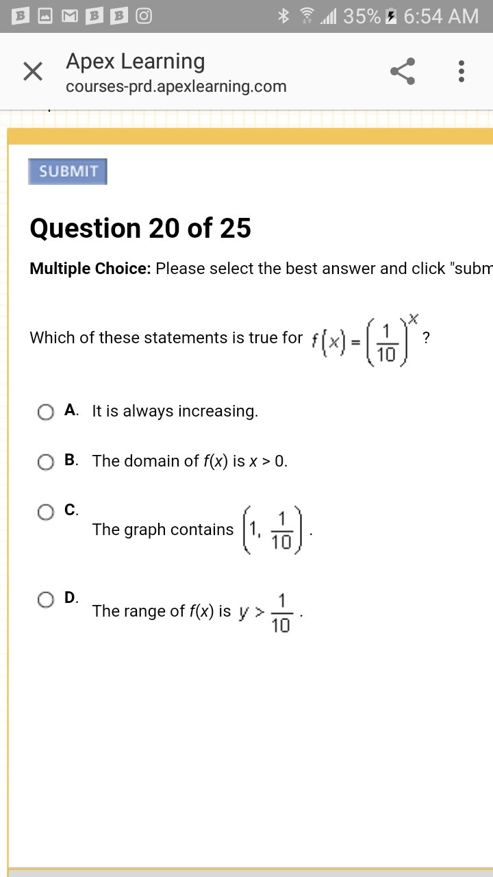 If x = 1 then f(x) = (1/10)^1 = 1/10