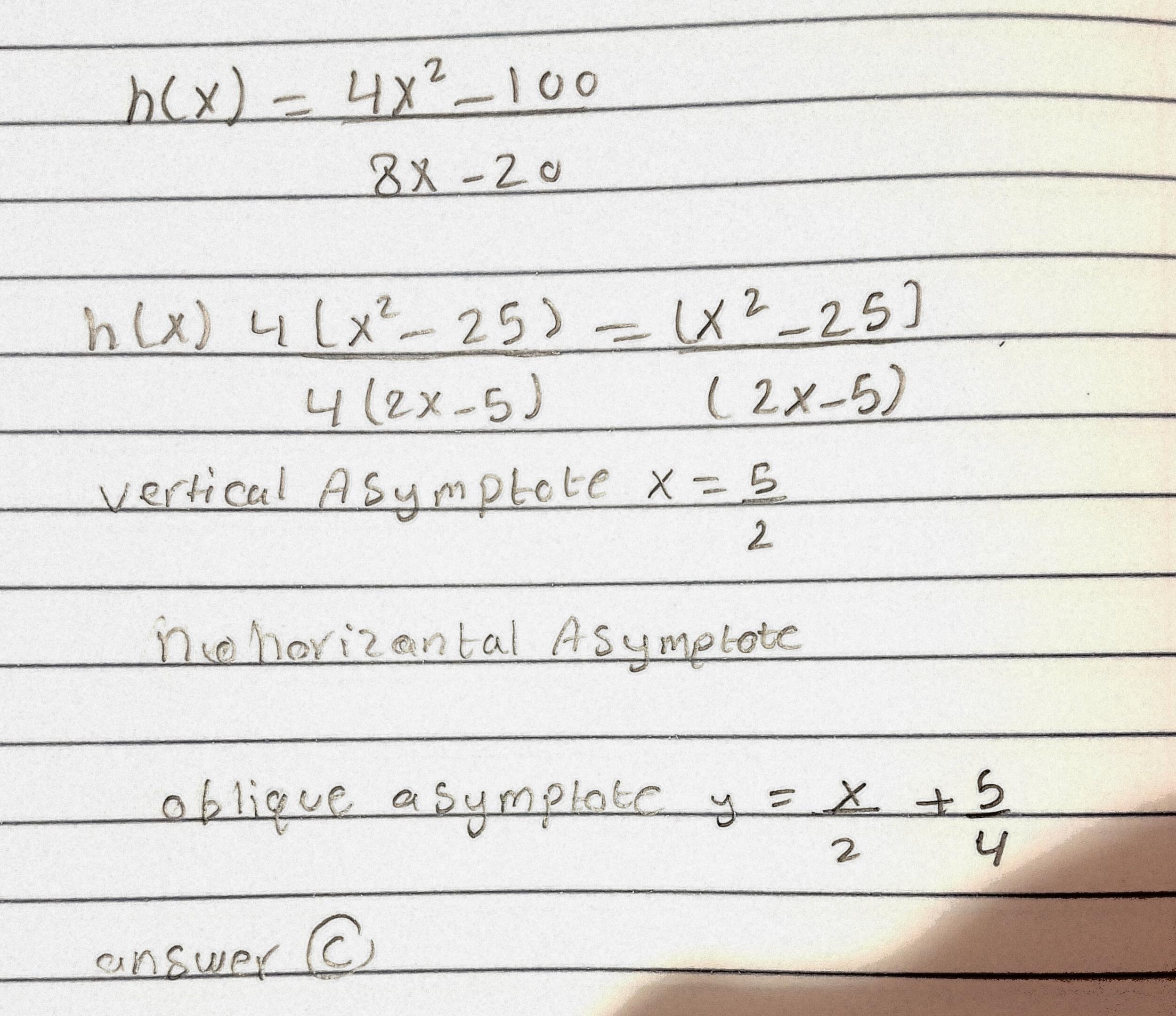 Option C. The graph has an oblique asymptote