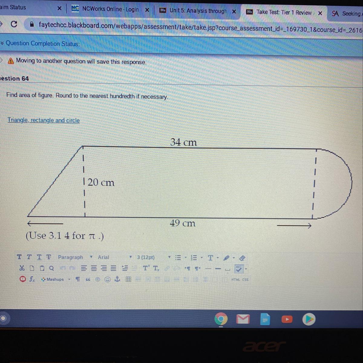 Area = 157cm²