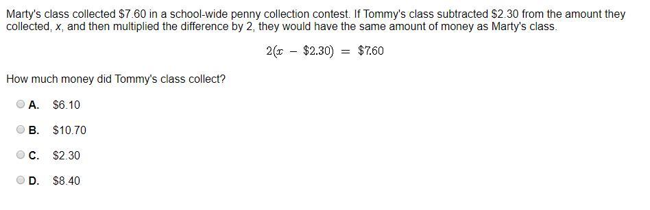 The correct answer is A. Tommy's class collected $6.10