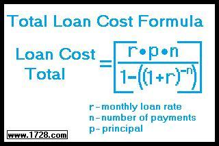 Total Loan Cost = (r*p*n) / 1 -((1 + r)^-n)