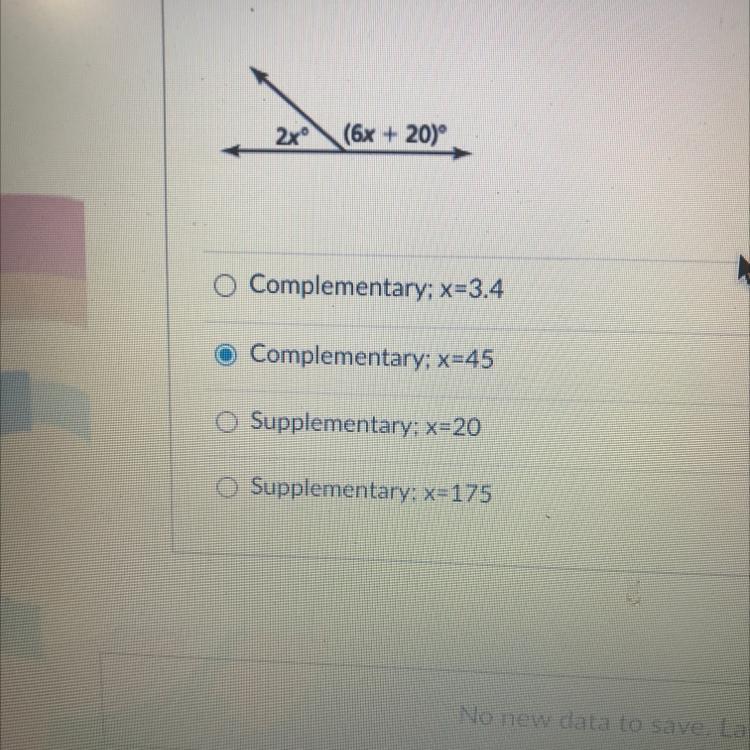 The first angle is 45°. The second angle is 135°.