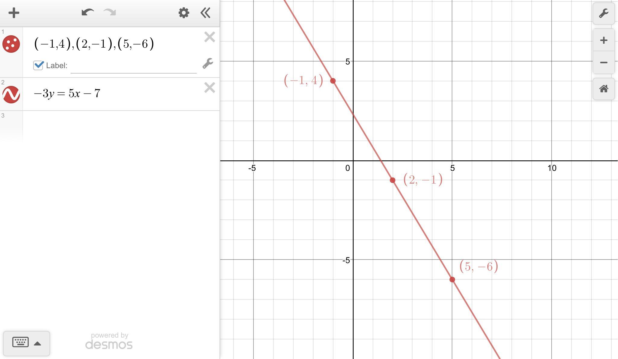 (x, y) = (-1, 4), (2, -1), (5, -6)