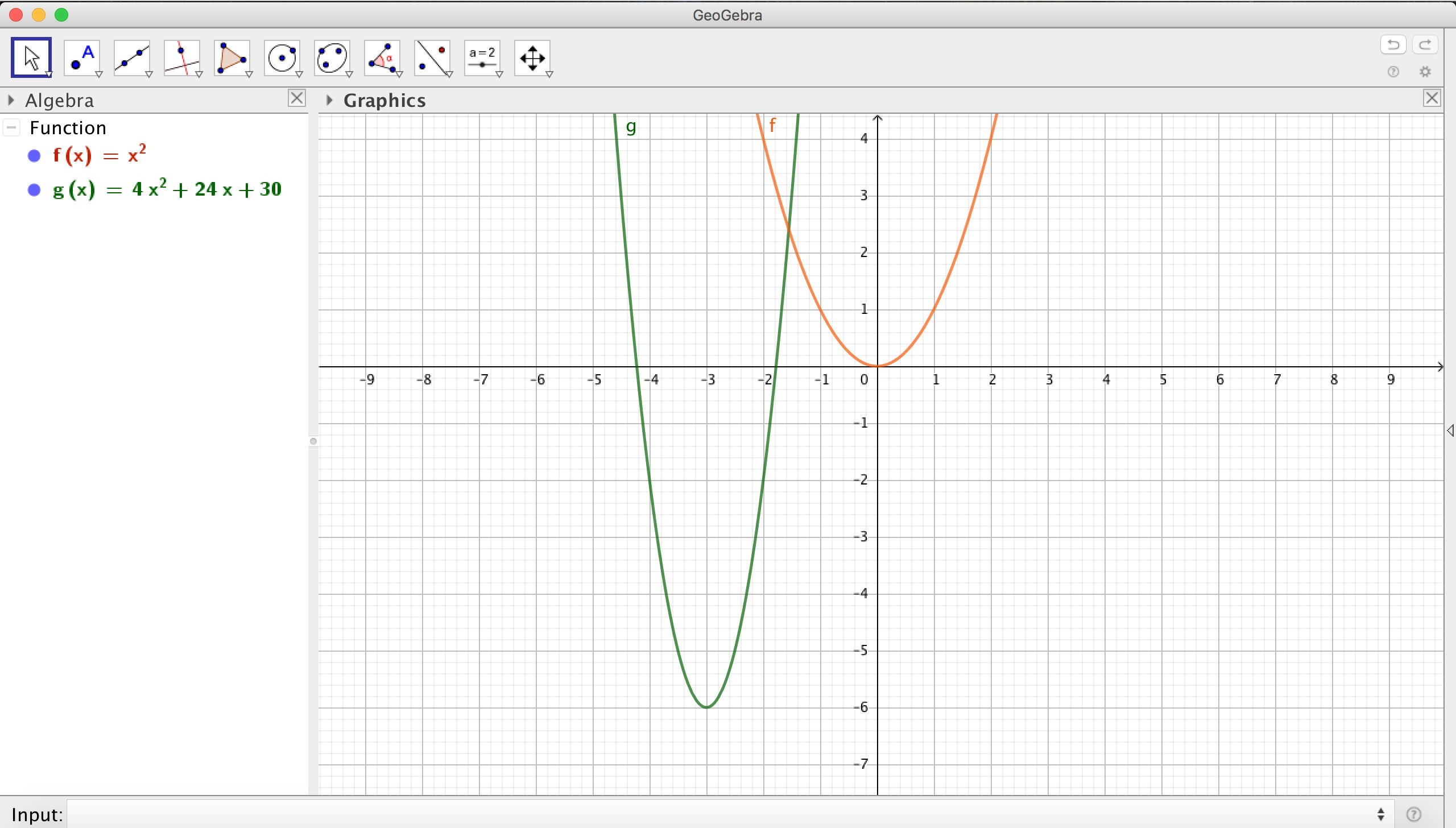 We know that the graph of f(x) is NOT shifted up 30 units. It is tempting to say this because we do see +30 as the last term. But, we have to calculate the vertex of g(x). If we find the point