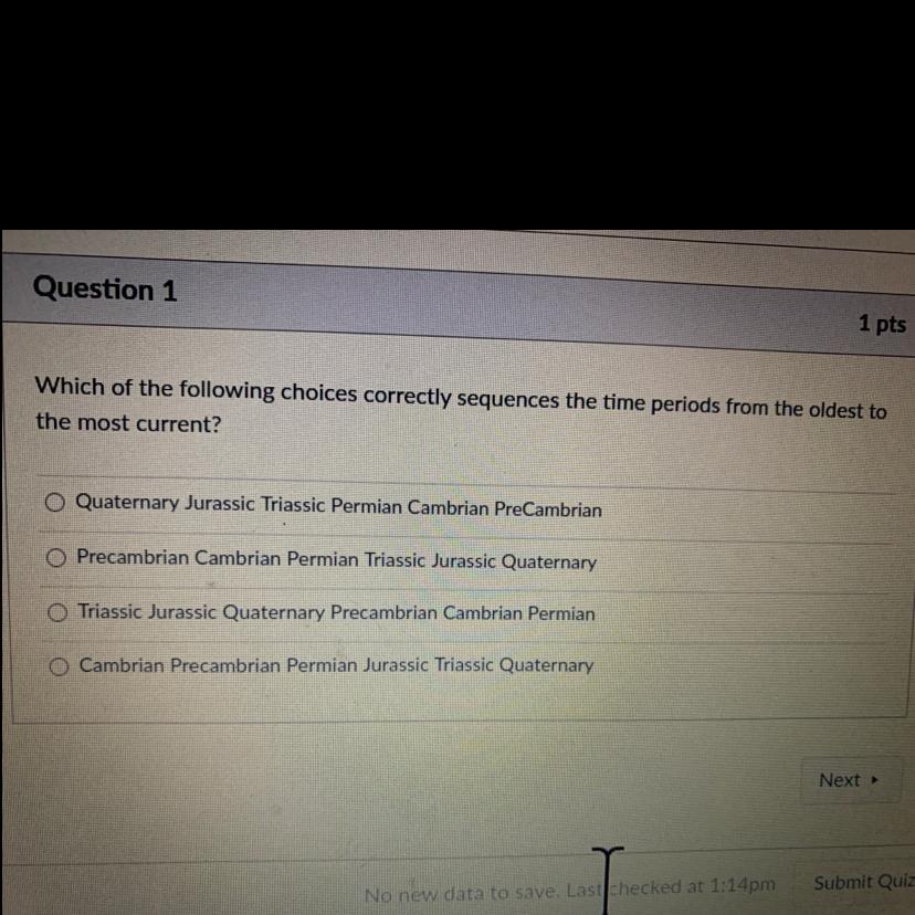 which of the following choices correctly sequences the time periods from the oldest to the most current ?