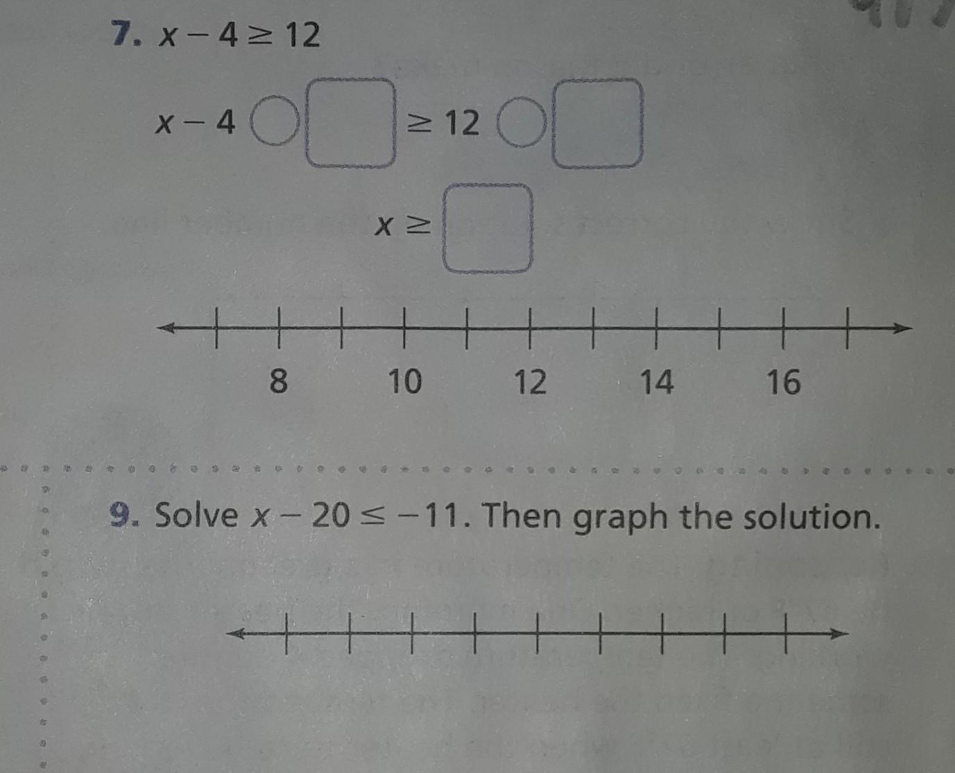 x - 4 <u>+ 4</u> ≥ 12 <u>+ 4</u>