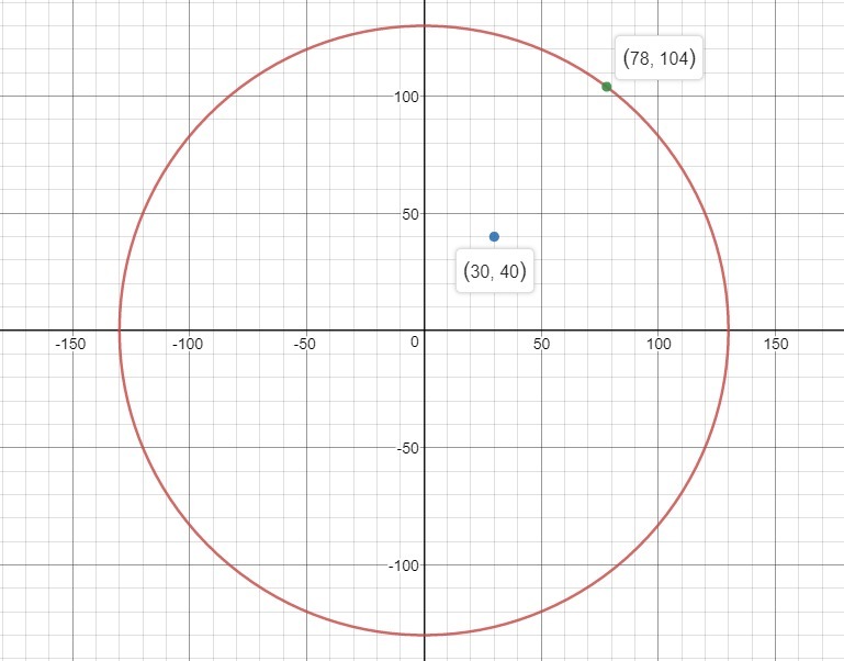 The distance "d' between the point and (30,40) is,