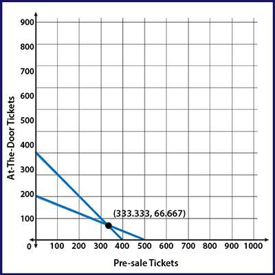 Let us assume that Anna sells x number of pre-sale tickets and y number of at-the-door tickets.