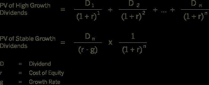 The current price of the stock can be computed using the two stage dividend growth model of the DDM approach. The DDM or dividend discount model values a stock based on the present value of the expected future dividends from the stock.