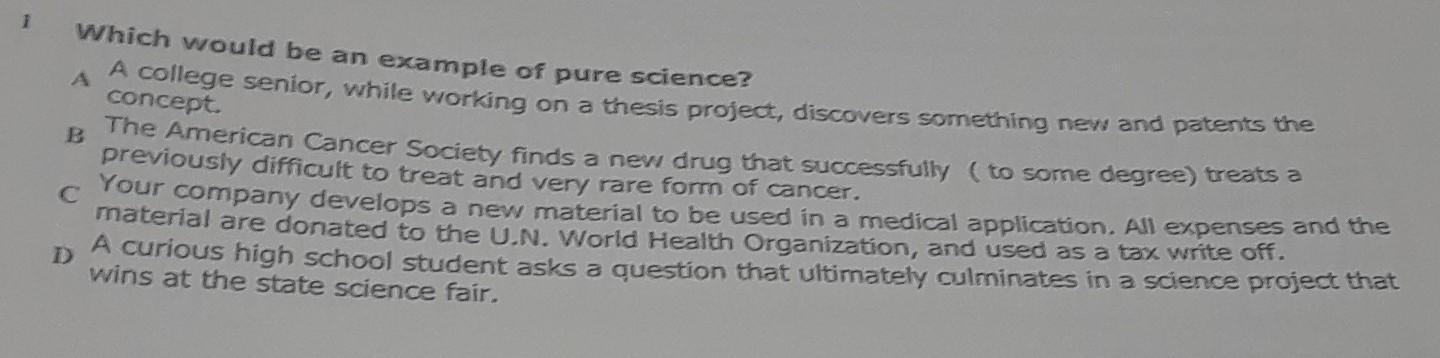 Which would be an example of pure science?​