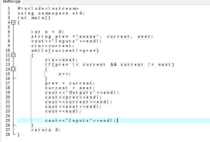 cout<<prev<<endl; // Print previous string