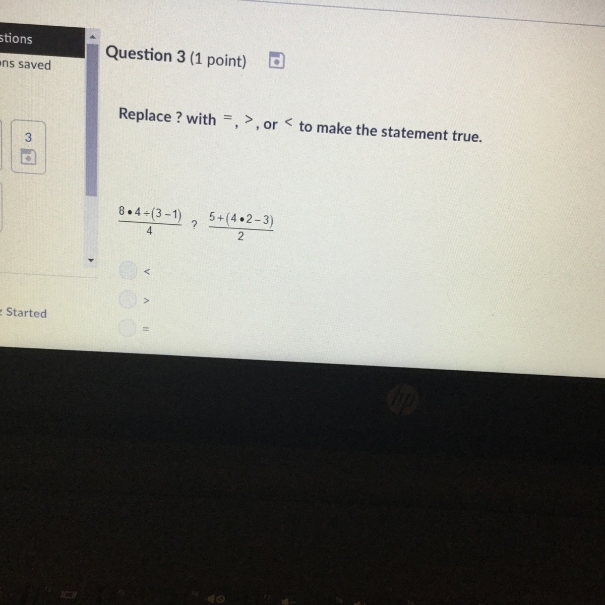 Now that you have both sides simplified the problem is now 4 ? 5 So in order to make the statement true is would be 4 ∠ 5 (4 is less than 5)