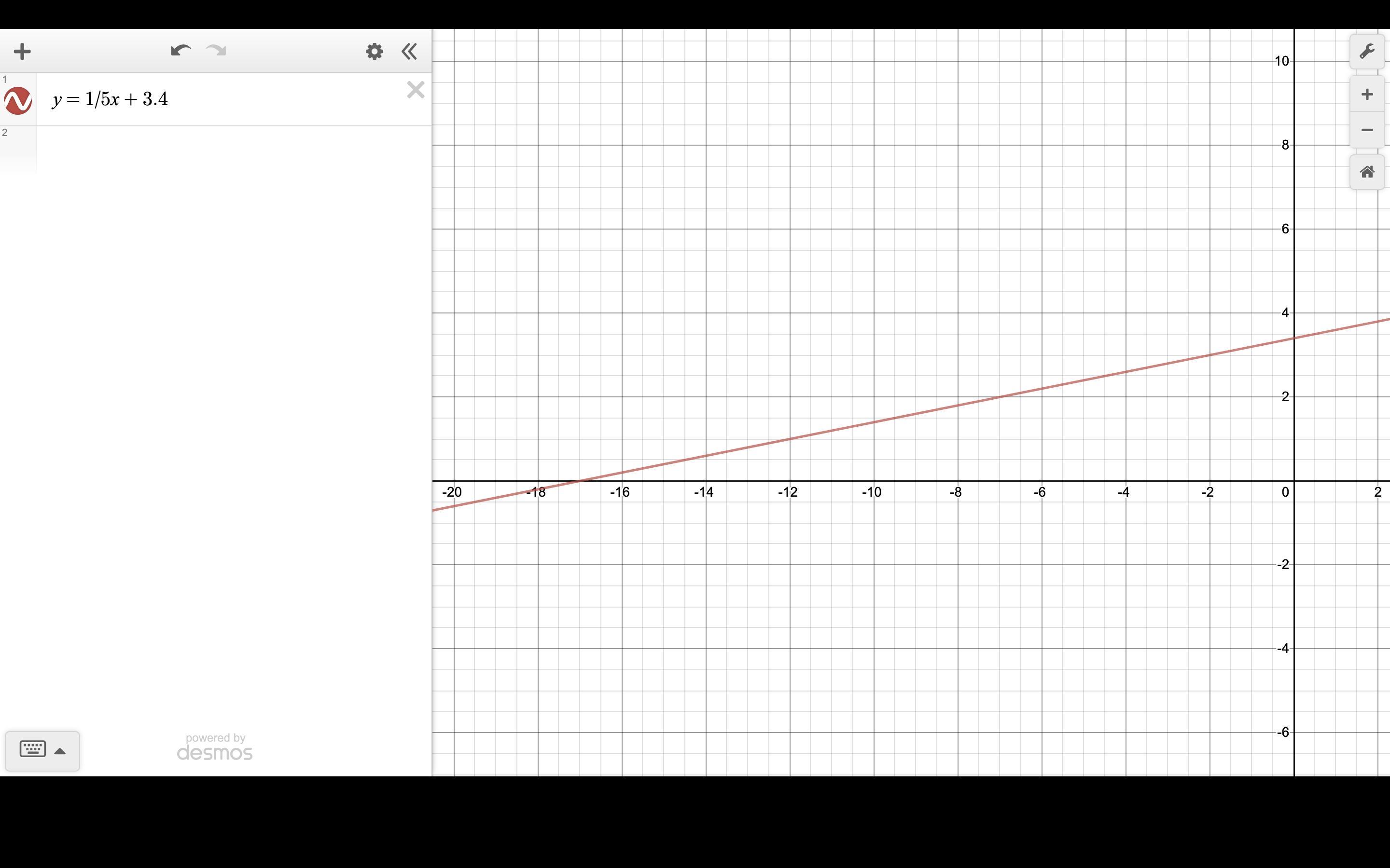 y = 1/5x + 3.4