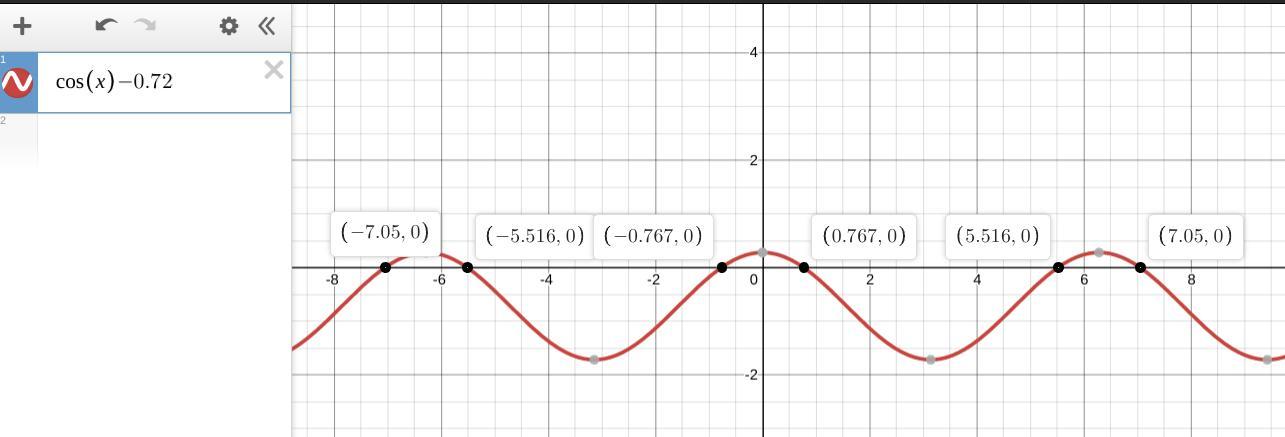 θ = ±arccos(0.72) + 2kπ ≈ ±0.77 +6.28k