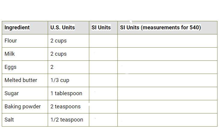 ingredient. U.s unit. SI unit. SI unit(540)