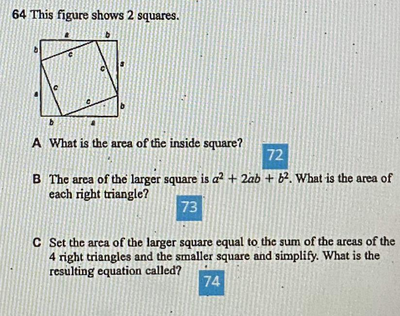 C: a^2 +b^2 = c^2 . . . Pythagorean theorem