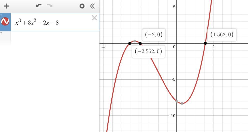The question is essentially asking which of -2, -1, 1, 2 is a zero of the polynomial. All of them are plausible, because all are factors of -8, the constant term.