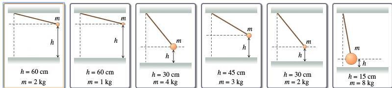 Rank each pendulum on the basis of the initial gravitational potential energy (before being released) of the pendulum-Earth syst