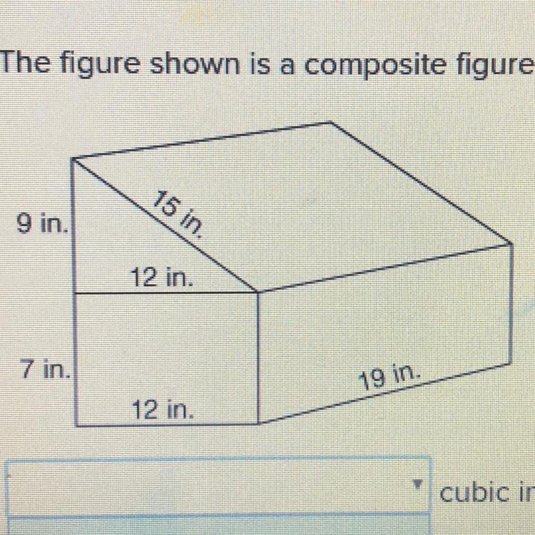 The answer can be found by adding up the volume of the two parts of the composite figure, which consists of a triangular prism and a rectangular prism